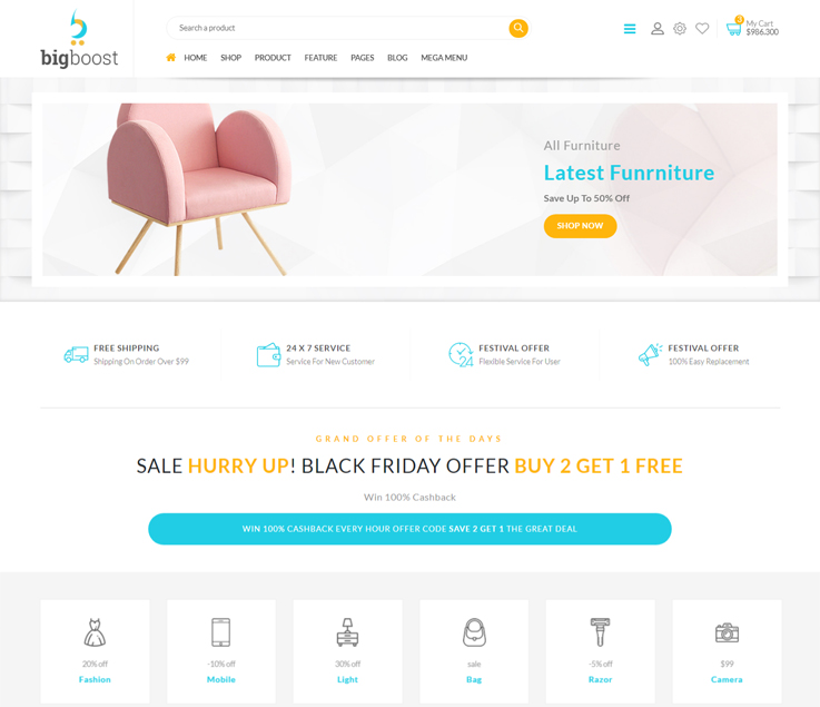 bigboost is Perfect ecommerce shopify multipurpose template for any business. it has all features and modules to create your amazing ecommerce website.