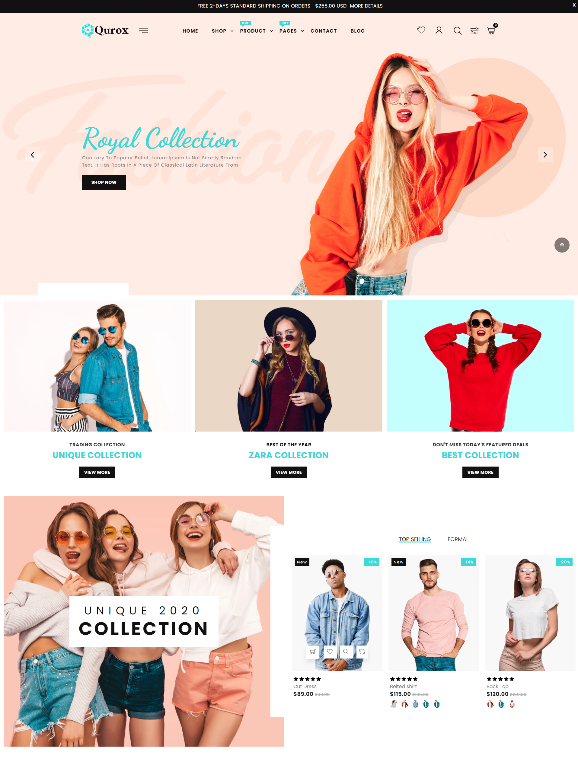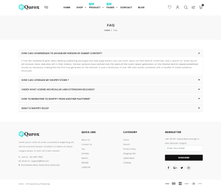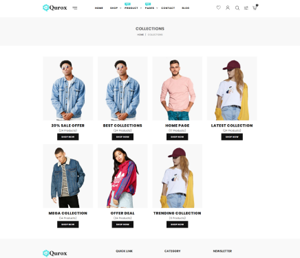 qurox shopify has 10 shop pages, it comes up with a lot of option for your shop's layout.