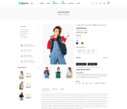qurox html has 15 different styles of product pages, it has all the options available as per your requirements.