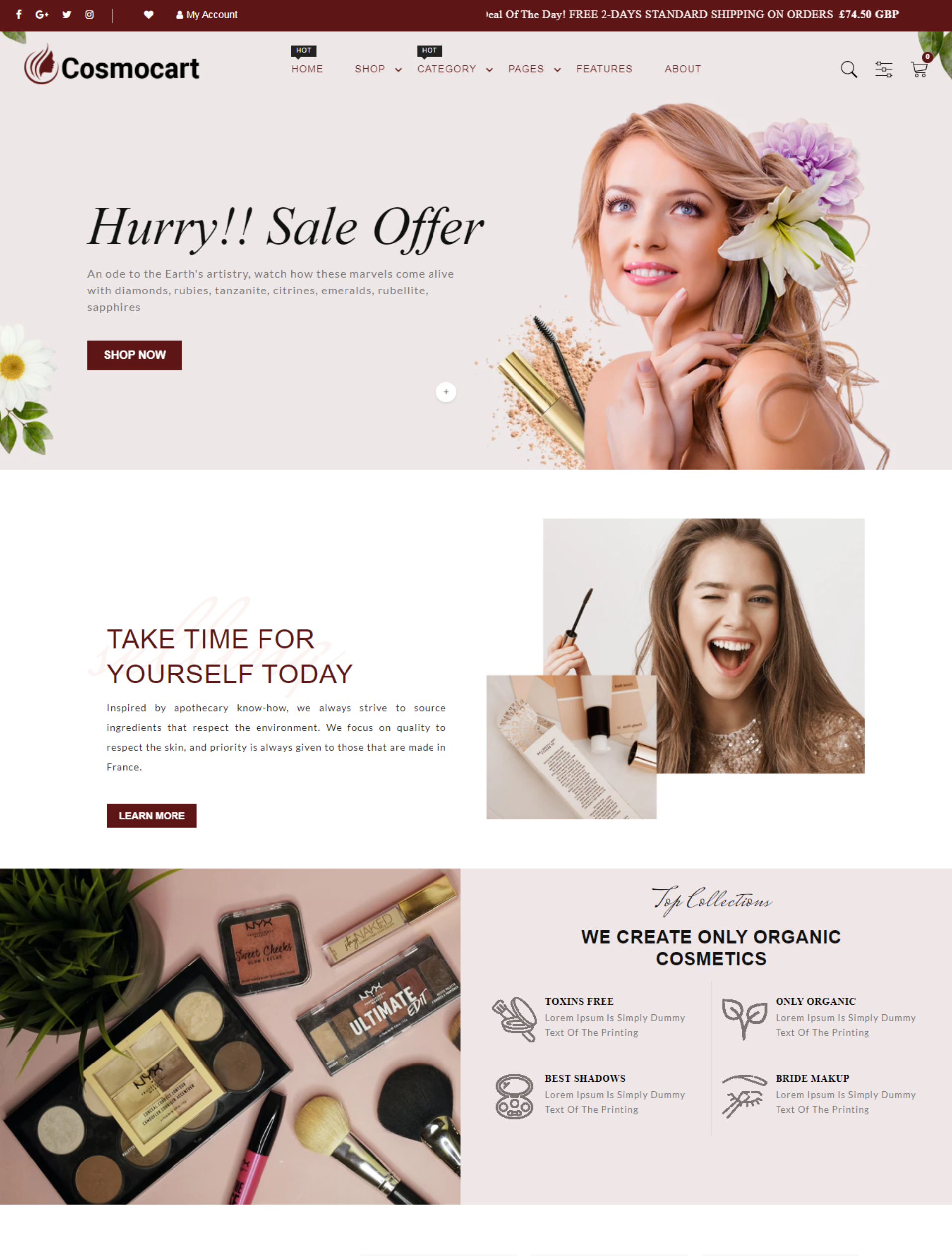 cosmocart shopify has 10 shop pages, it comes up with a lot of option for your shop's layout.